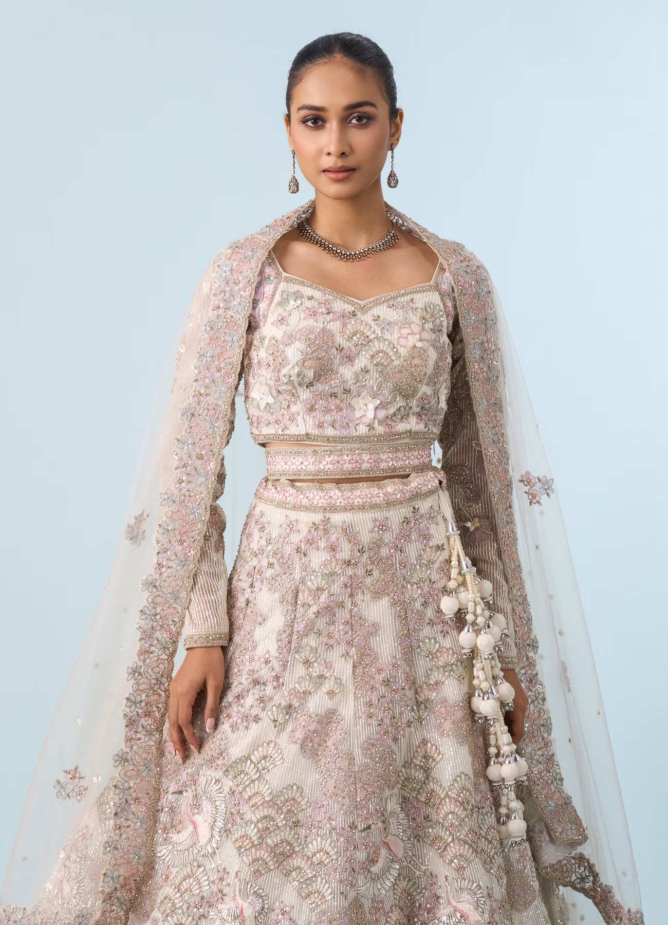 Lightweight yet luxurious, the Bridal Lehenga combines comfort with sophistication, ensuring you look stunning while moving effortlessly throughout your special day. Its versatile cream hue allows for elegant accessorizing, whether you prefer traditional gold jewelry or contemporary statement pieces. Celebrate your big day in style with this exquisite ensemble that balances modern design with timeless bridal charm.